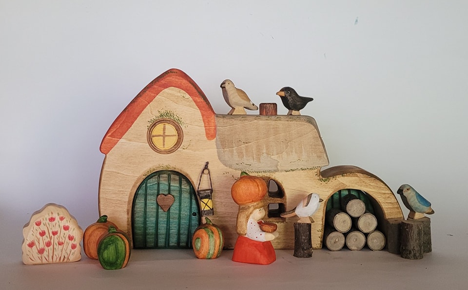 Autumn dwarf mother with pie